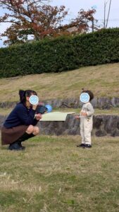 追いかけっこをしたりボール遊びをしたり飛び石を飛んだりシャボン玉をしたりと しっかり遊んできました^ ^